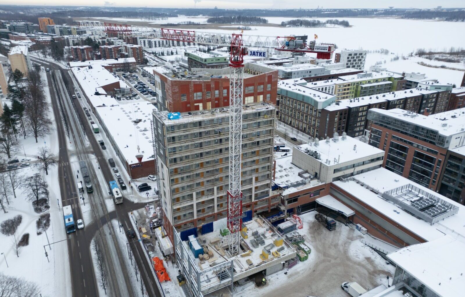 Rakentamisen aikainen lämmitys ja kuivatus toteutetaan vesi-ilmalämpöpumpputekniikalla sekä lattialämmitysputkistolla. Työaikaista lämmitysjärjestelmää seurataan ja ohjataan etäyhteydellä. “Tämä on ollut energiatehokas ratkaisu, josta on saatu merkittävää hyötyä betonin kuivumiseen ja lujuuden kehitykseen”, kohteen työnjohtaja, Jatke Uusimaan Mikko Partinen sanoo.