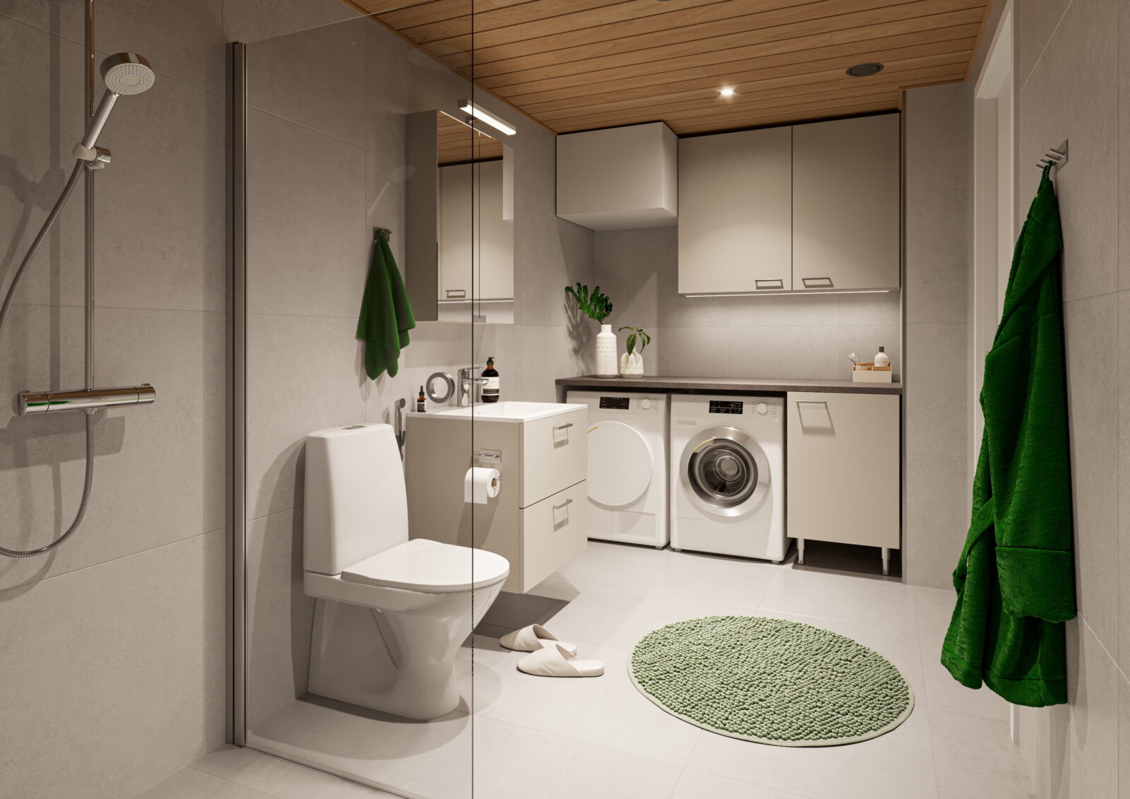 Kaukolämpö, vesikiertoinen lattialämmitys, viilennys